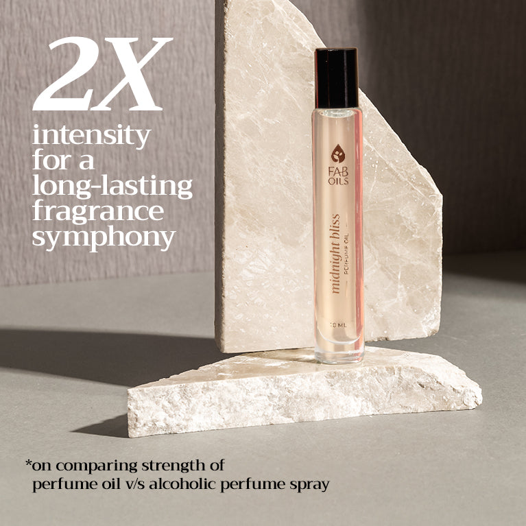 - Fab Oils Perfume Oils boast an enduring formula that provides long-lasting fragrance with 2x higher intensity than alcohol-based fragrances. Experience a lingering allure that surpasses the typical longevity of conventional perfumes.